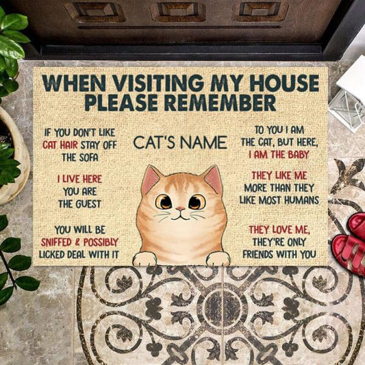 When Visiting My House Please Remember Personalized Doormat - Cat, Name can be customized