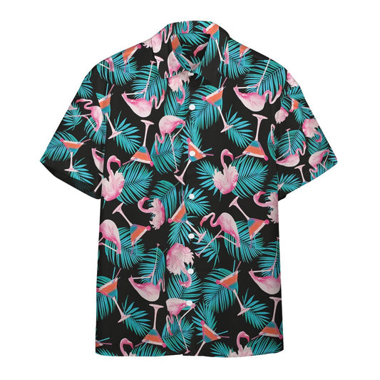 Martini Flamingo Hawaiian Button Shirt
