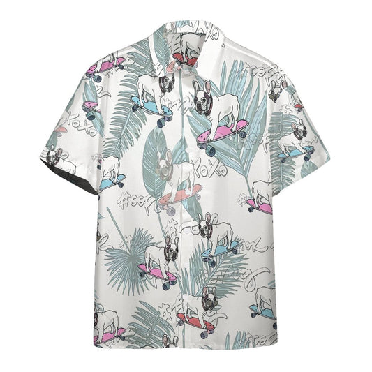 French Bulldog On Skateboard Hawaii Button Shirt