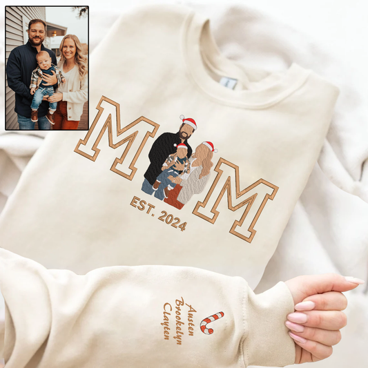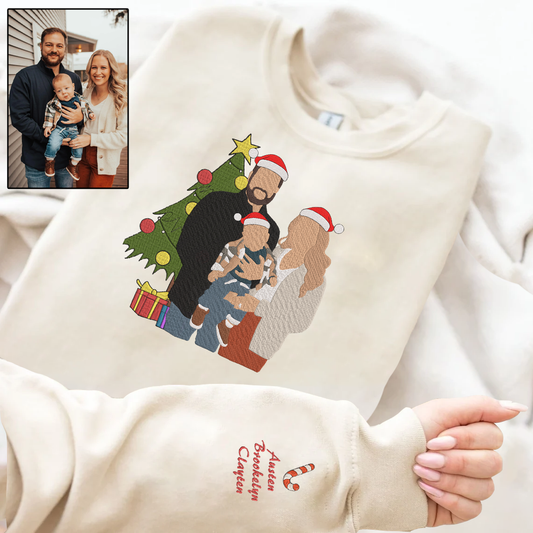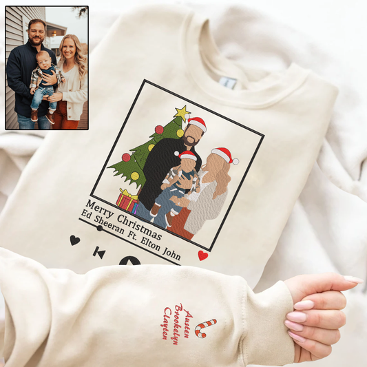 Christmas Embroidered Family Photo Custom Text Hoodie Sweatshirt T-Shirt
