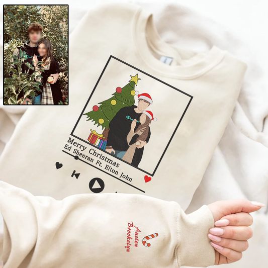 Christmas Embroidered Couple Photo And Song Hoodie Sweatshirt T-Shirt