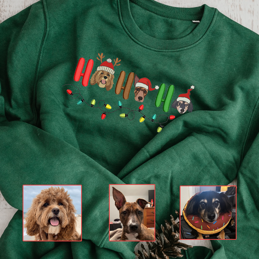 Personalized Embroidered Pet Dog Cat Hohoho Christmas Hoodie Sweatshirt T-Shirt
