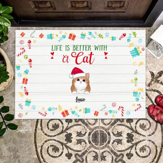 Christmas Life Is Better With Cat Personalized Doormat - Cats and Names can be customized
