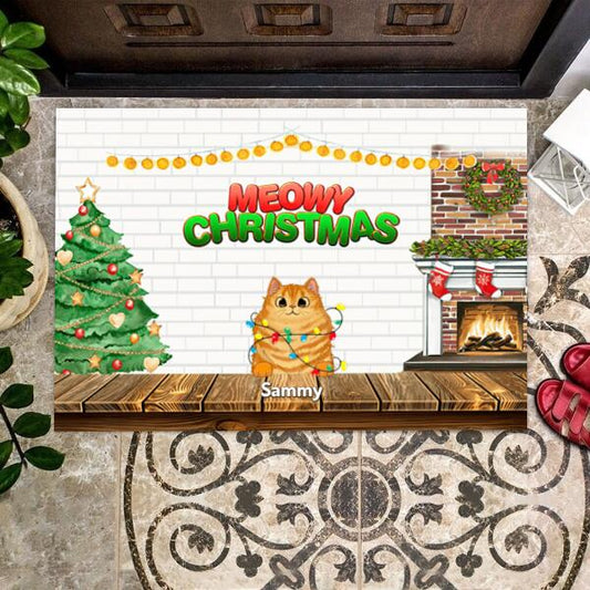 Meowy Christmas Cat Personalized Doormat - Cats, Names and Design can be customized
