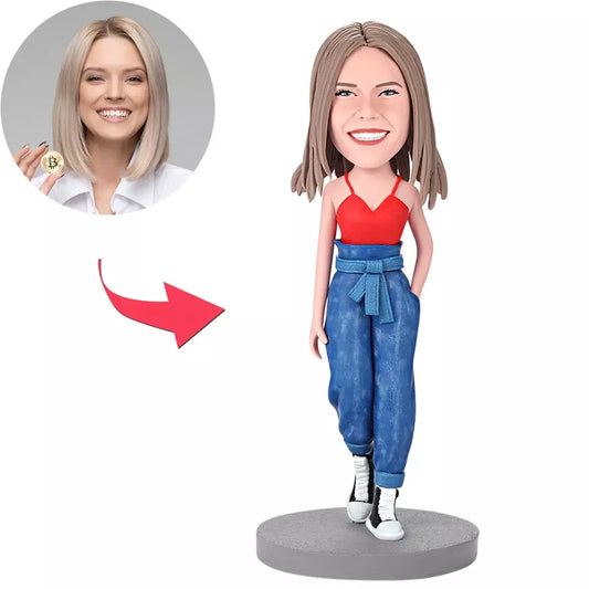Modern Woman Walking Custom Bobblehead Clay Dolls