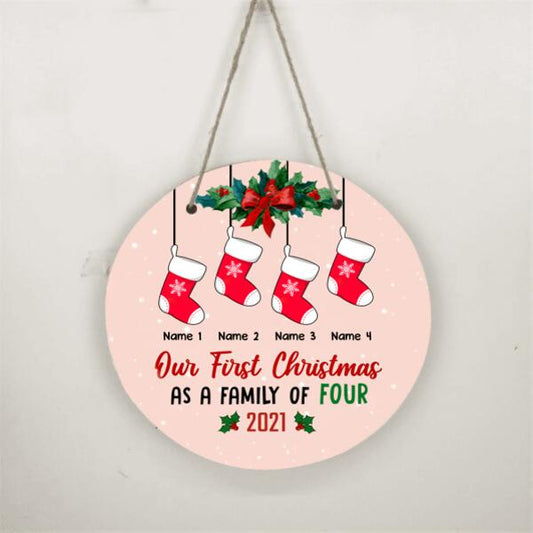 Our Family First Christmas Personalized Doorplate - Socks, Number Of People and Names can be customized