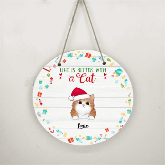 Christmas Life Is Better With Cat Personalized Doorplate - Cats and Names can be customized