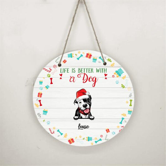 Christmas Life Is Better With Dog Personalized Doorplate - Dogs and Names can be customized