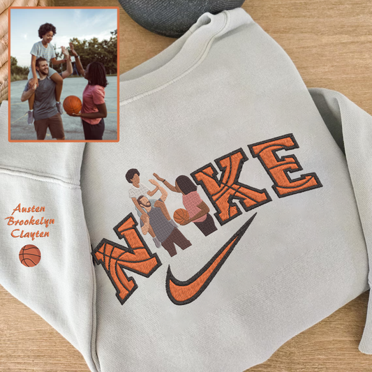Christmas Embroidered Family Photo Custom Text Hoodie Sweatshirt T-Shirt