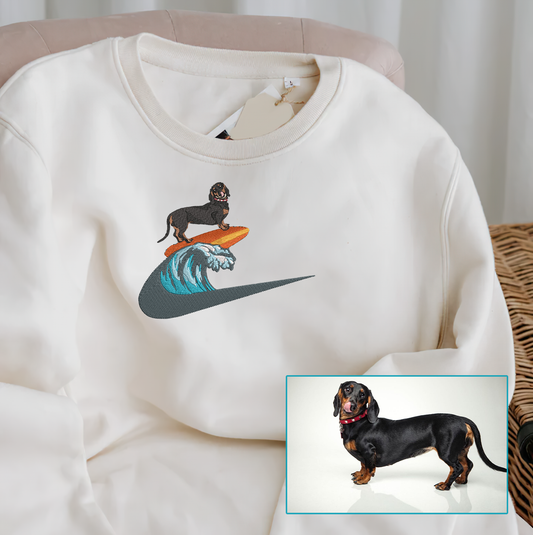 Personalized Embroidered Pet Dog Cat Surfer Hoodie Sweatshirt T-Shirt