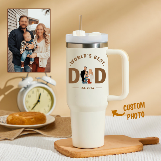 Father's Day World's Best Dad Personalized Text 40oz Insulated Mug with Handle and Straw Stainless Steel Custom Travel Cup Gift for Family Friends Couples