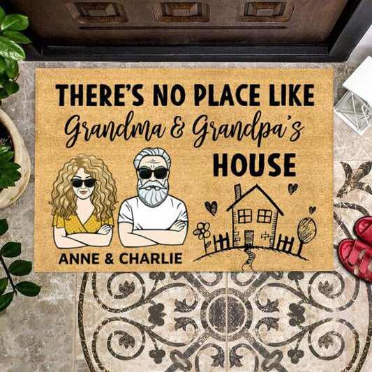 No Place Like Grandpa Grandma Personalized Doormat - Title, Man, Woman can be customized