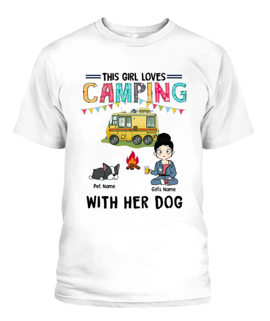 This Girl Loves Camping With Her Fur Babies Personalized Graphic Apparel - Car, Skin, Hair, Drink, Pets And Name can be customized
