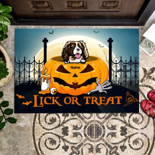 Halloween Pet Lick Or Treat Personalized Doormat - Pets and Names can be customized