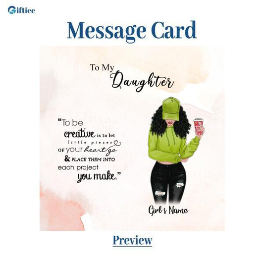 To My Daughter Personalized Necklace With Personalized Message Card (9 Necklace Designs) - Name, Skin, Hair, Clothes, Drink, Background and Quote can be customized