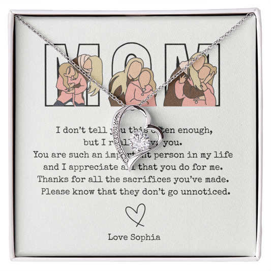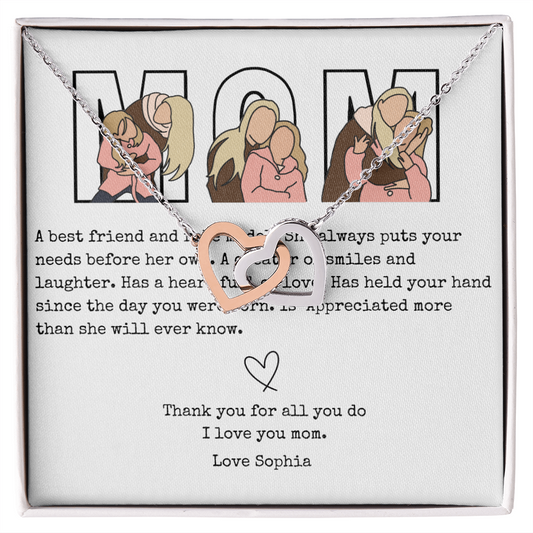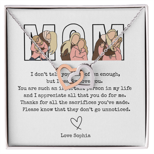 Personalized Thank You Mom Interlocking Hearts Necklace