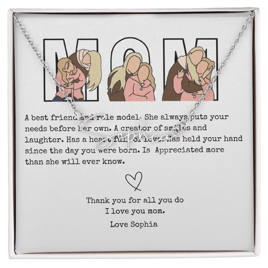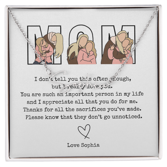 Personalized Mom I Love You Interlocking Hearts Necklace