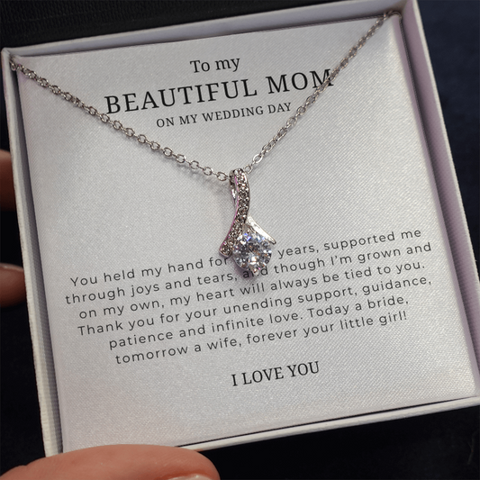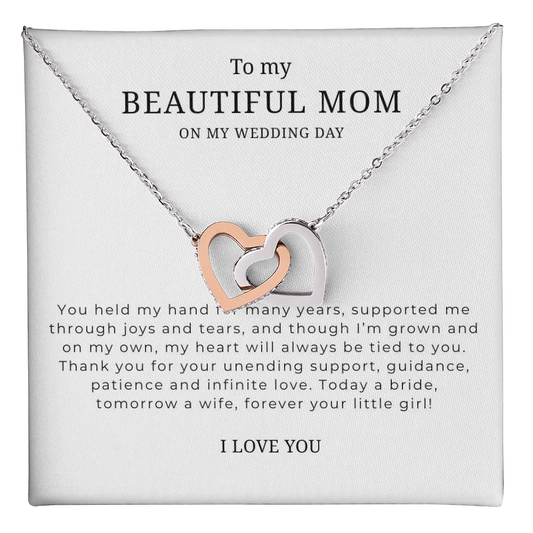 To My Beautiful Mom On My Wedding Day Interlocking Hearts Necklace