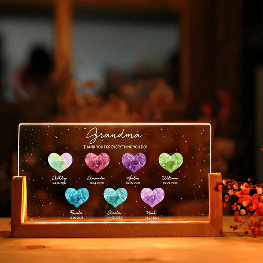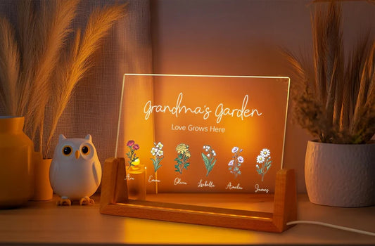 Grandmas Garden Custom Acrylic LED Night Light, Gift For Grandma, Mother's Day Gift