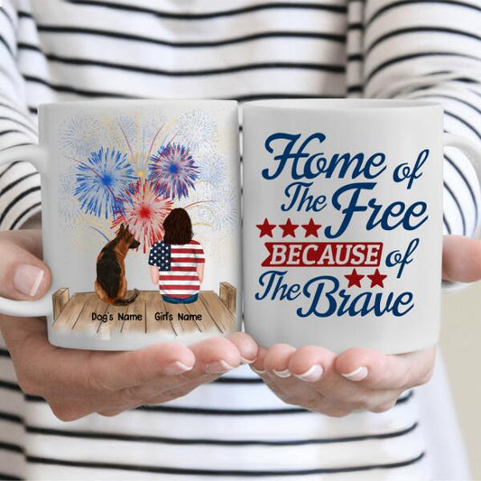 Girl And Dogs 4th Of July US Independence Day Personalized Mug - Name, Skin, Hair, Dog, Background, Quote can be customized