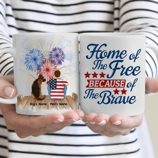 Man And Dogs Fourth Of July Personalized Mug - Name, Skin, Hair, Dog, Background, Quote can be customized