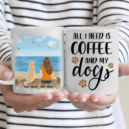Girl and Dogs Personalized Mug - Name, skin, hair, dog, background, quote can be customized