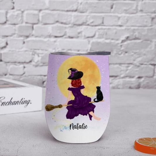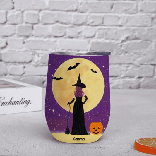 Sisters Witches Halloween Personalized Wine Tumbler - Girls and Names can be customized