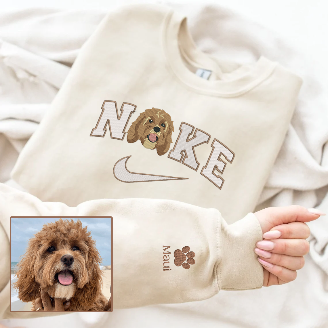 Personalized Embroidered Pet Dog Cat With Name On Sleeve Hoodie Sweatshirt T-Shirt