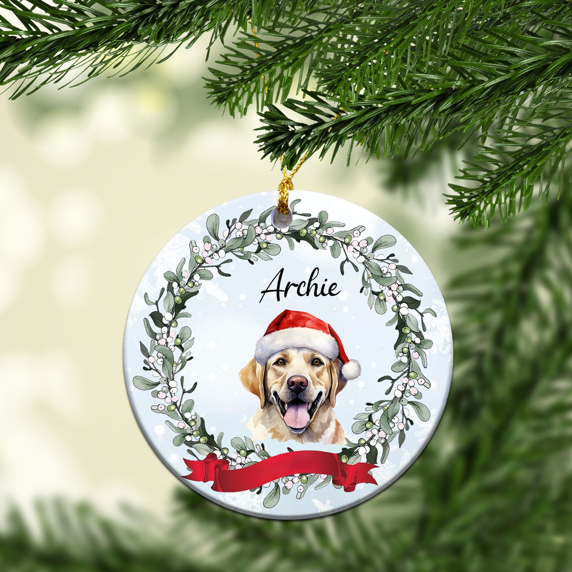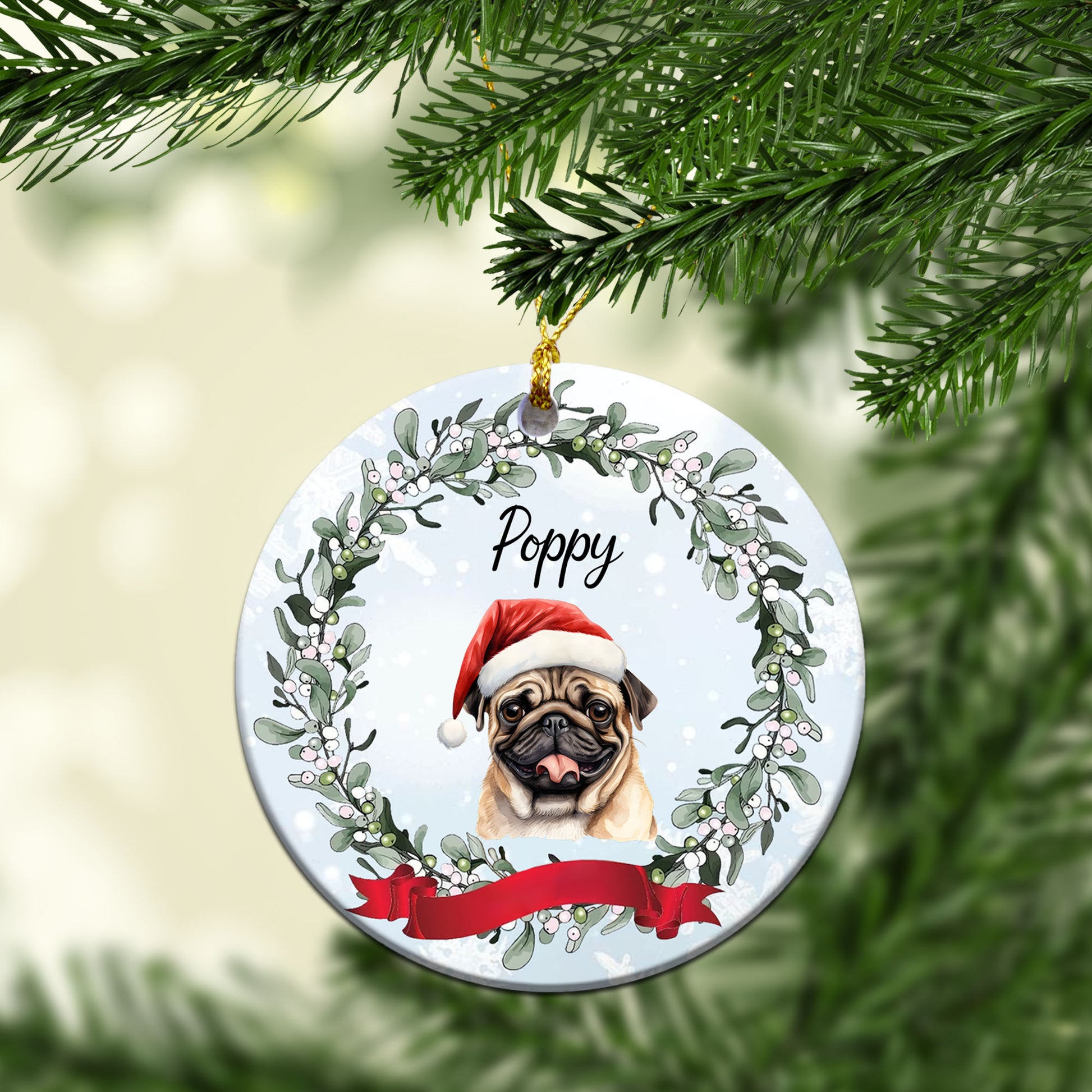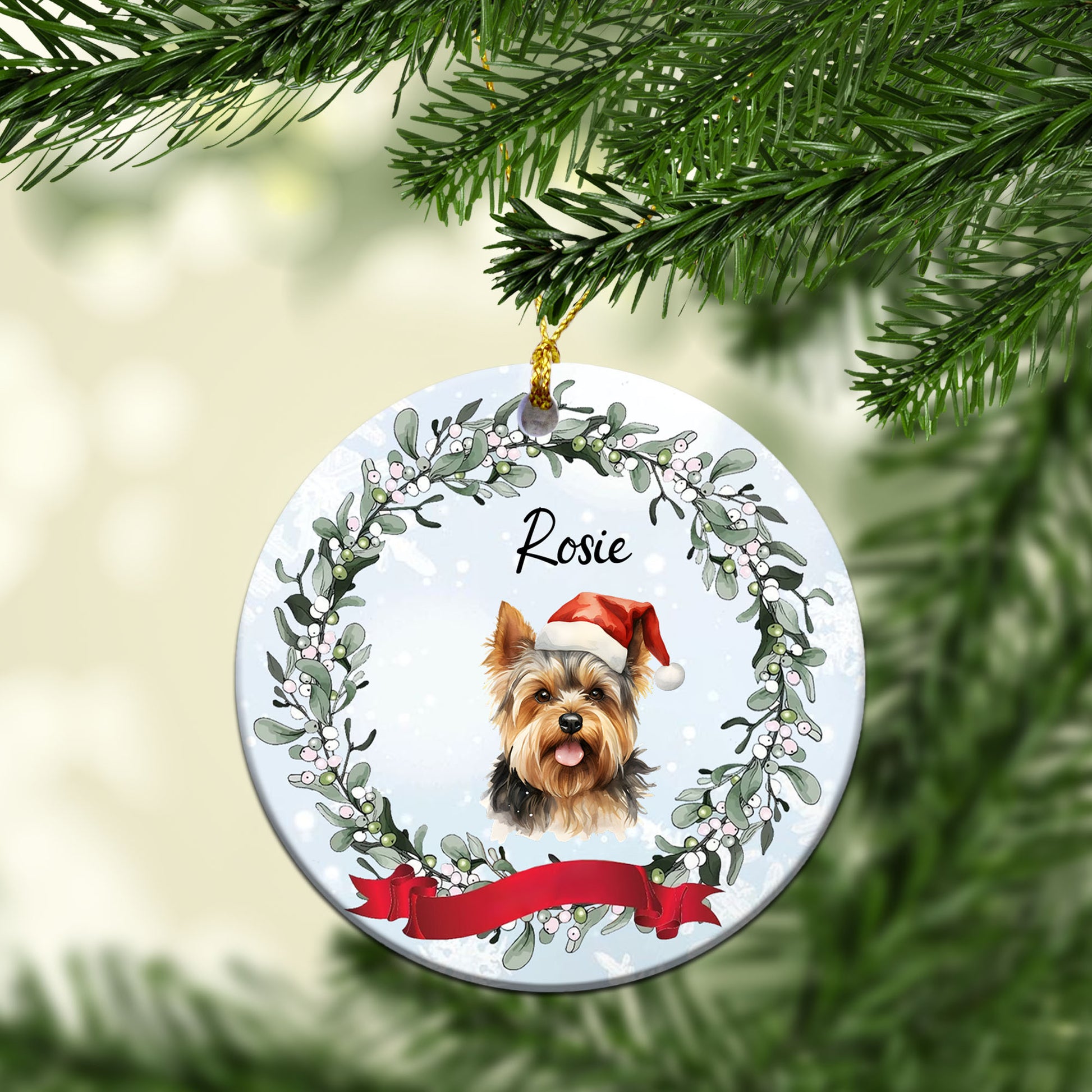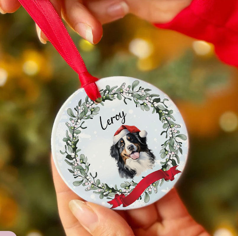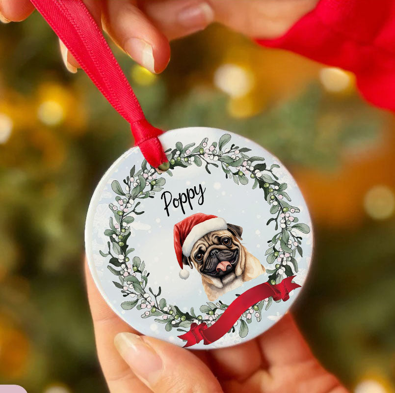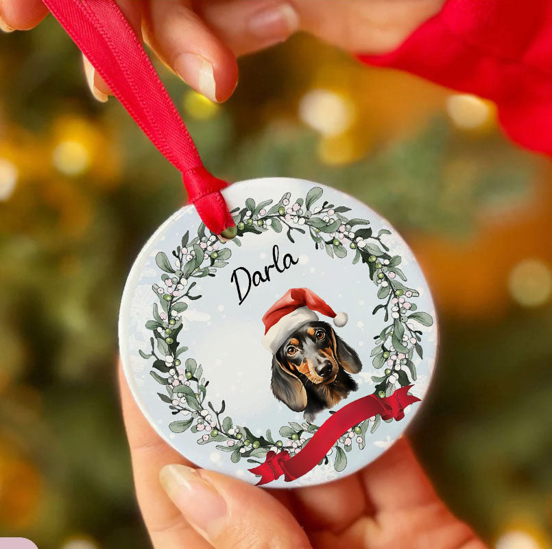 This personalized 2.9" round ceramic ornament is hand-made and is fully customizable.