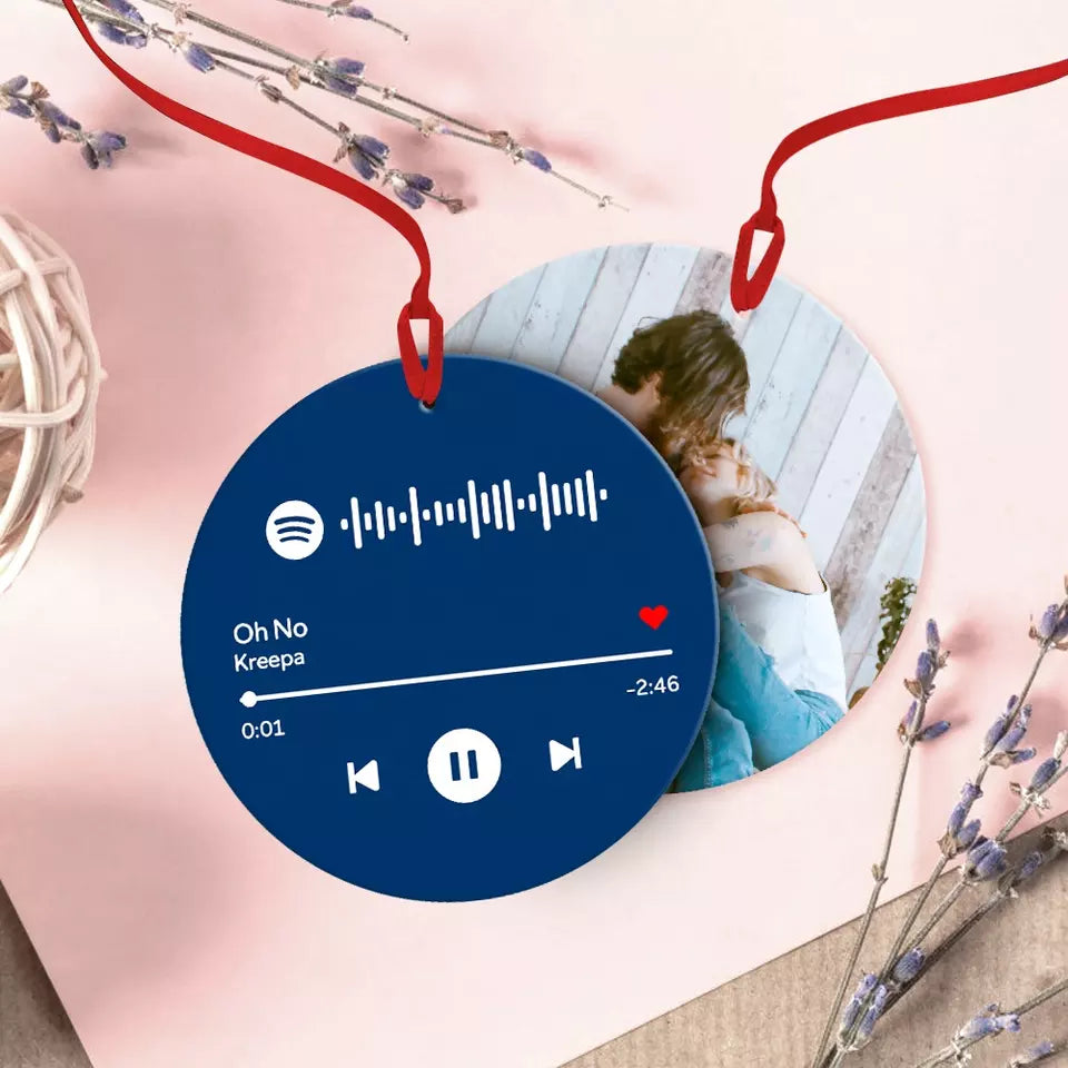 Custom Engraved Spotify Premium Music Song Ornaments Double Side Photo Hanging Ornament