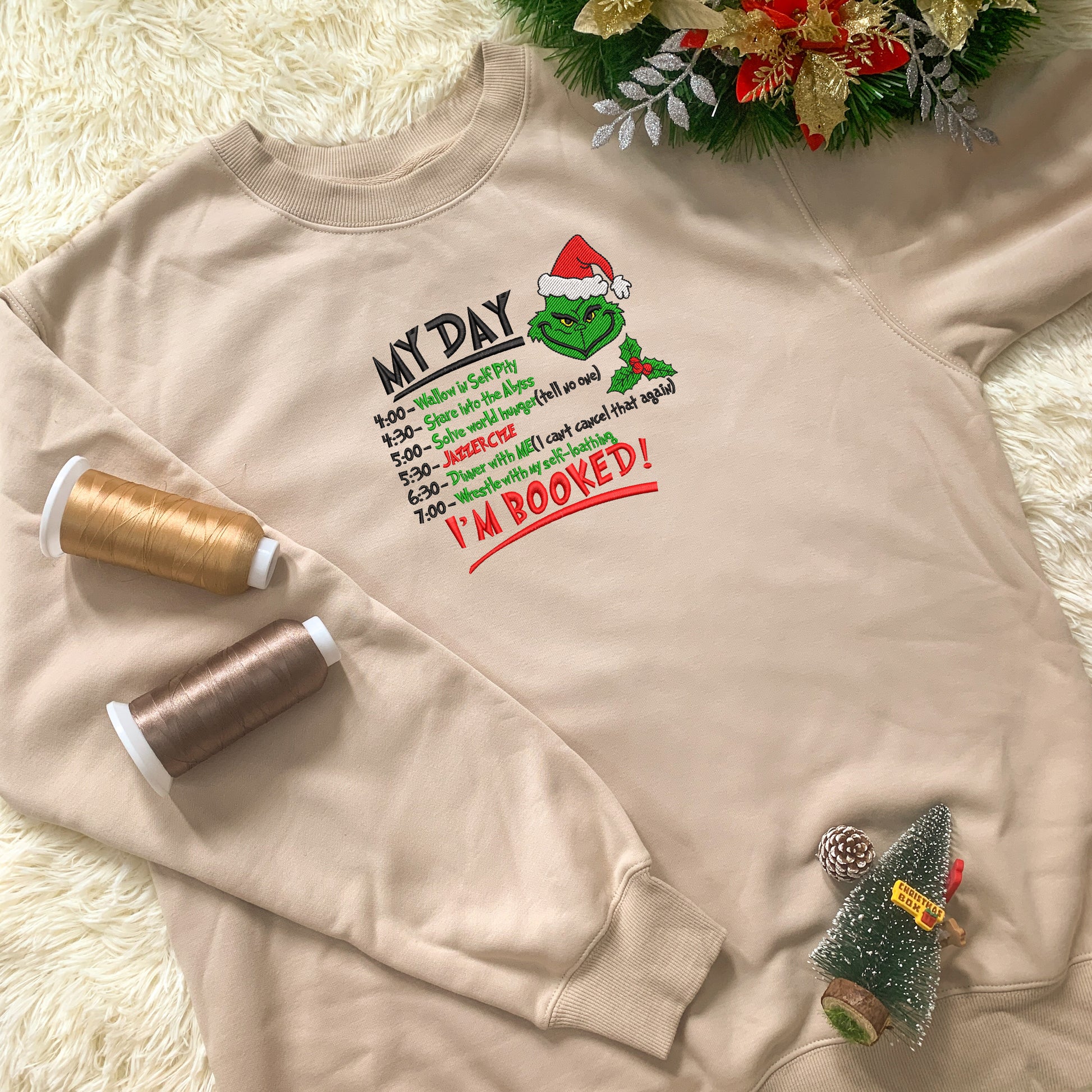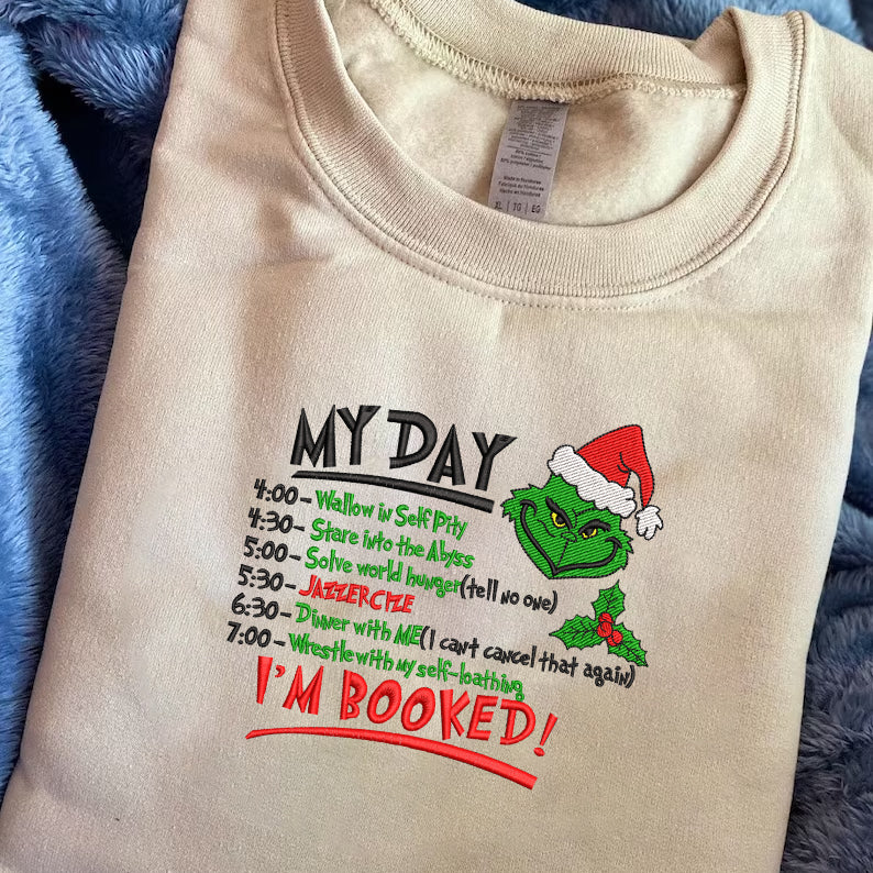 Embroidered Merry G-r-i-n-c-hmas Hoodie Sweatshirt T-Shirt