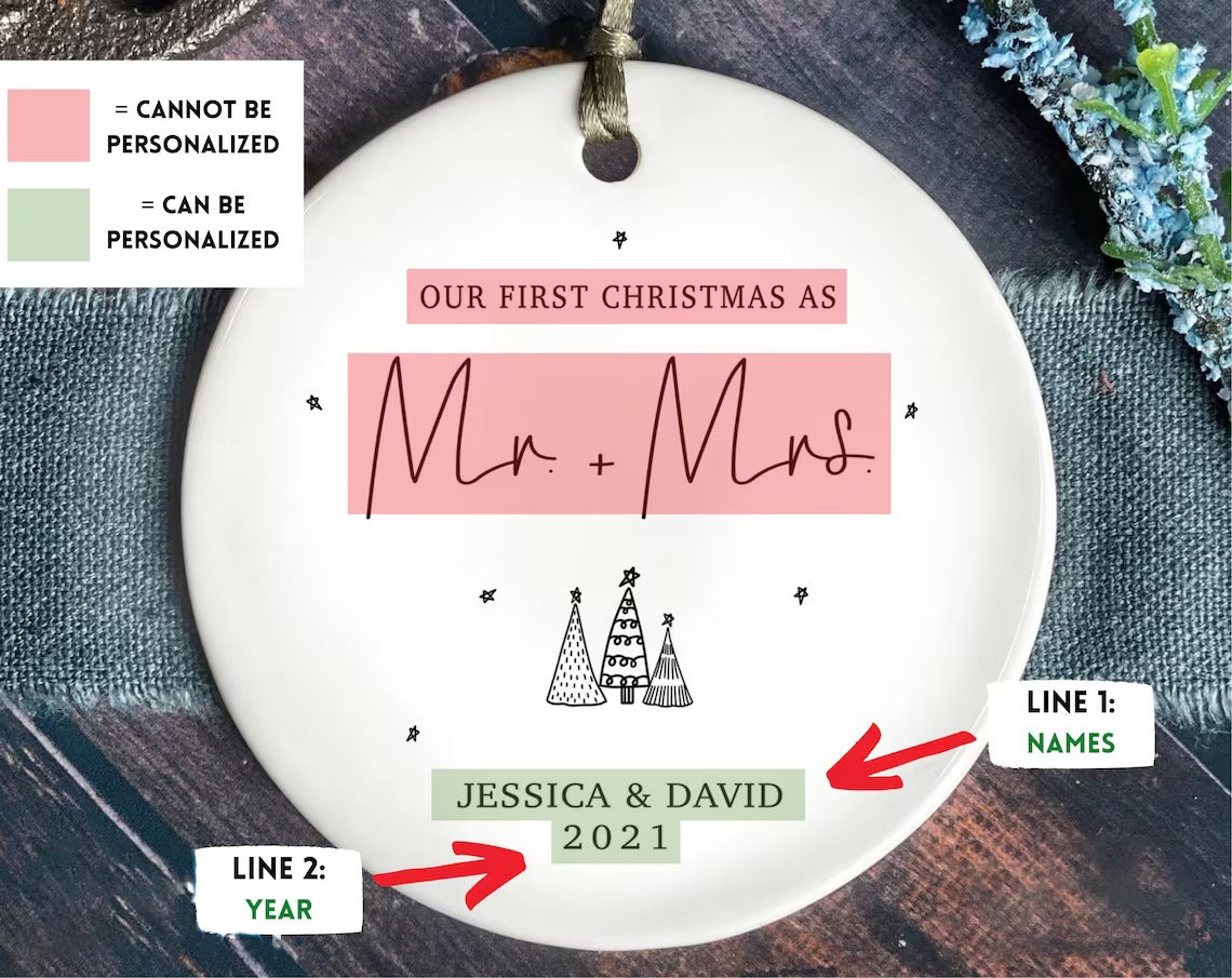 First Christmas Married Ornament - Mr and Mrs Tree Christmas Ornament - Our First Christmas Married as Mr and Mrs Ornament
