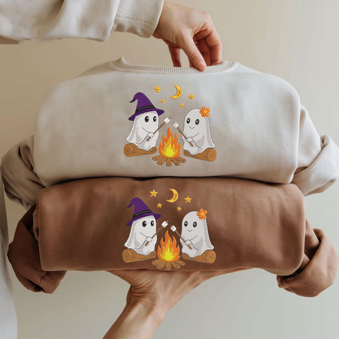 Halloween Personalized Embroidered Ghost Campfire Crew Cute Hoodie Sweatshirt T-Shirt