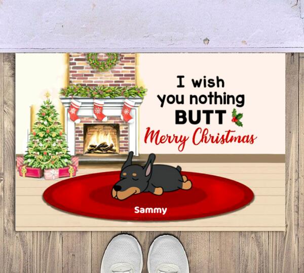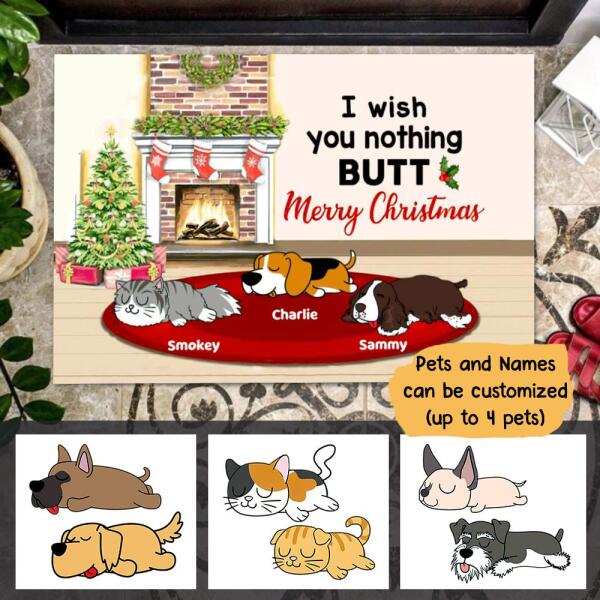 I Wish You Nothing Butt Merry Christmas Personalized Doormat - Pets and Names can be customized