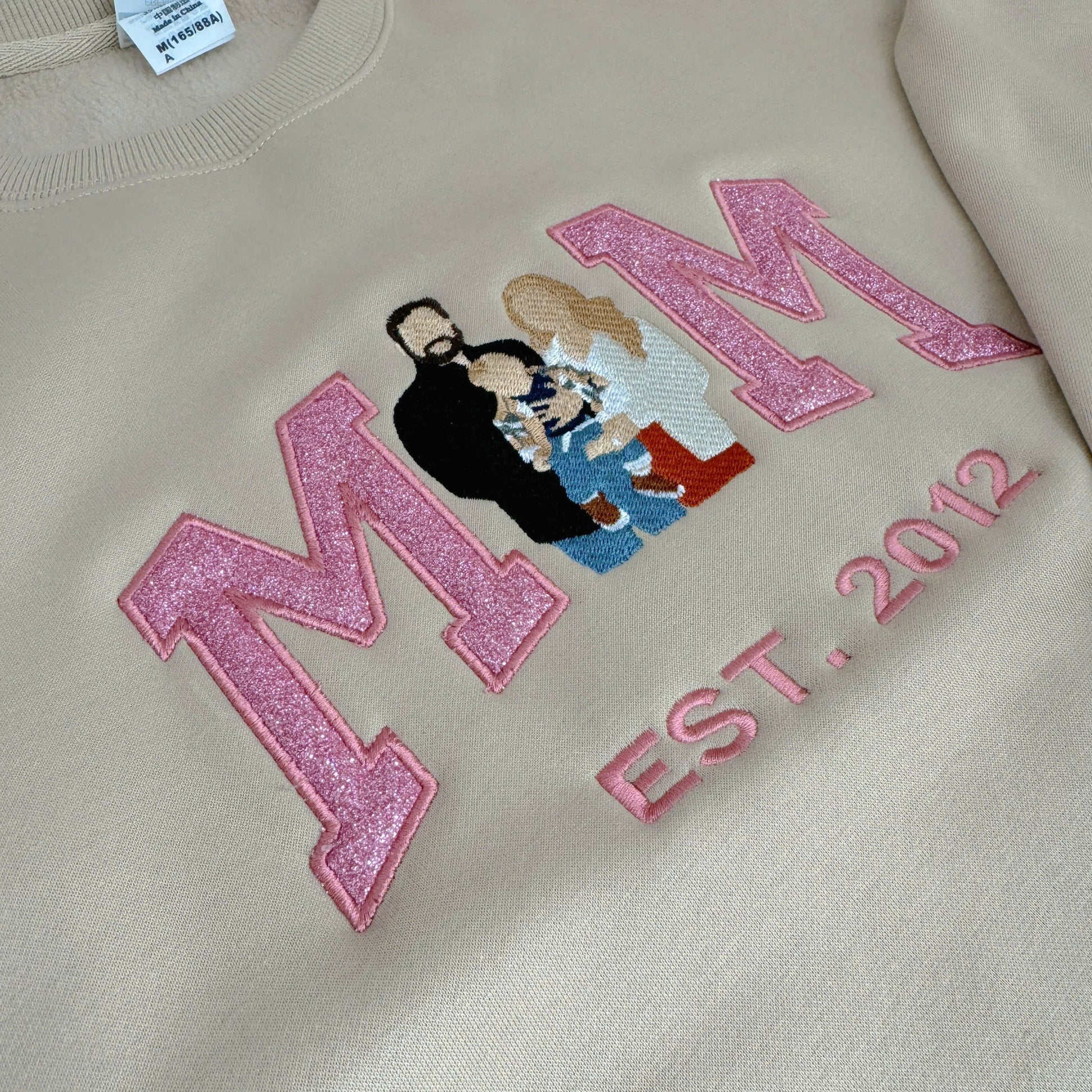 Mother's Day Personalized Embroidered Family Photo Glitter Hoodie Sweatshirt T-Shirt