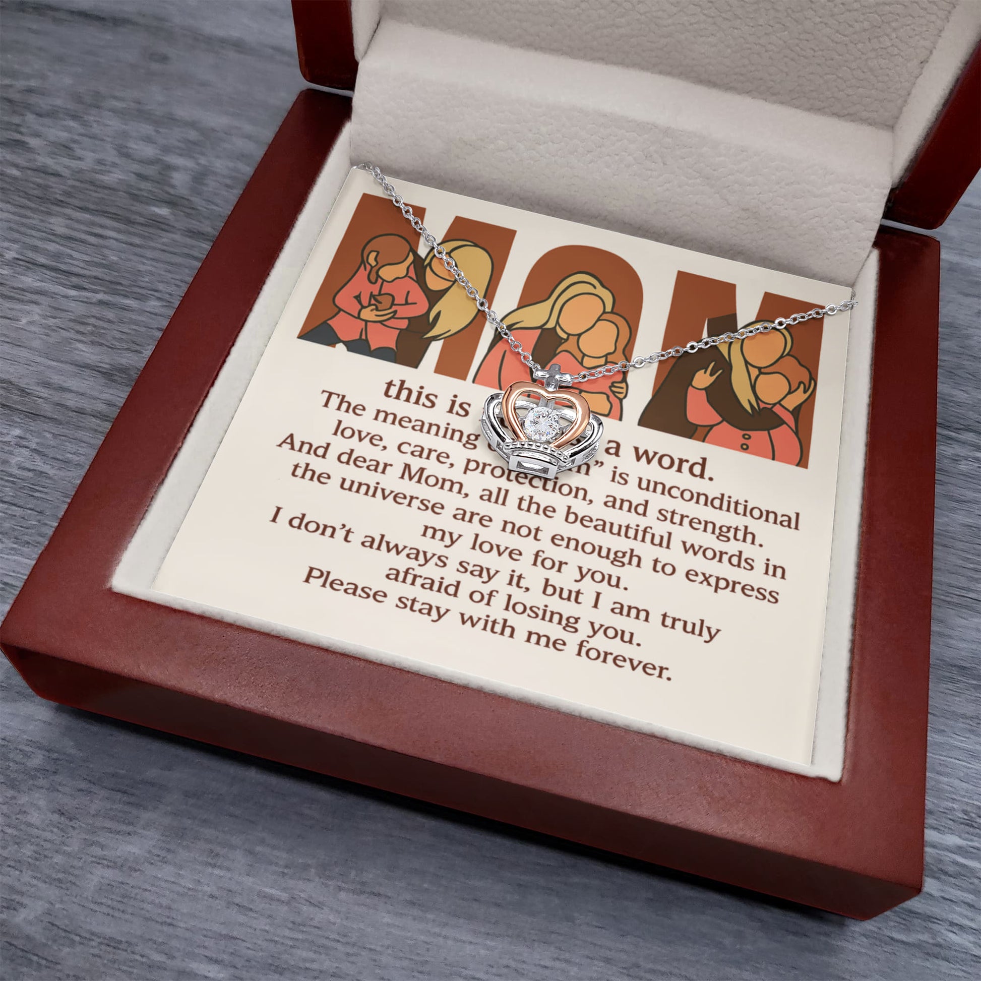 Personalized Crown Pendant Necklace with 3 Family Photos for Mom