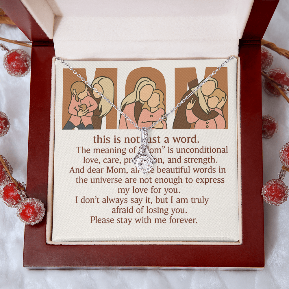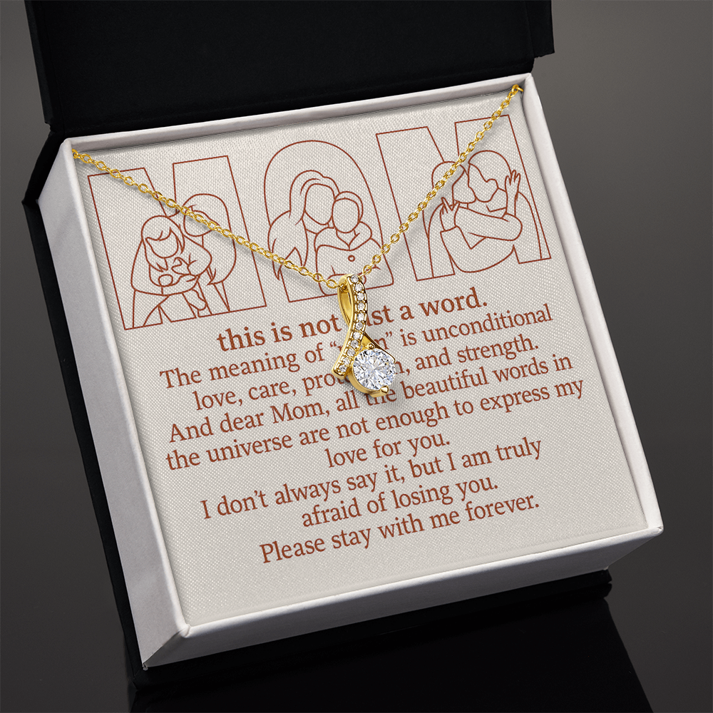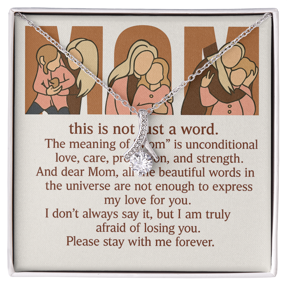 Imagine her reaction when she opens this stunning gift! The Alluring Beauty necklace features a petite ribbon shaped pendant that is sure to dazzle your special someone. Whether it's a birthday or anniversary, make sure to get her a gift she will love for years to come.