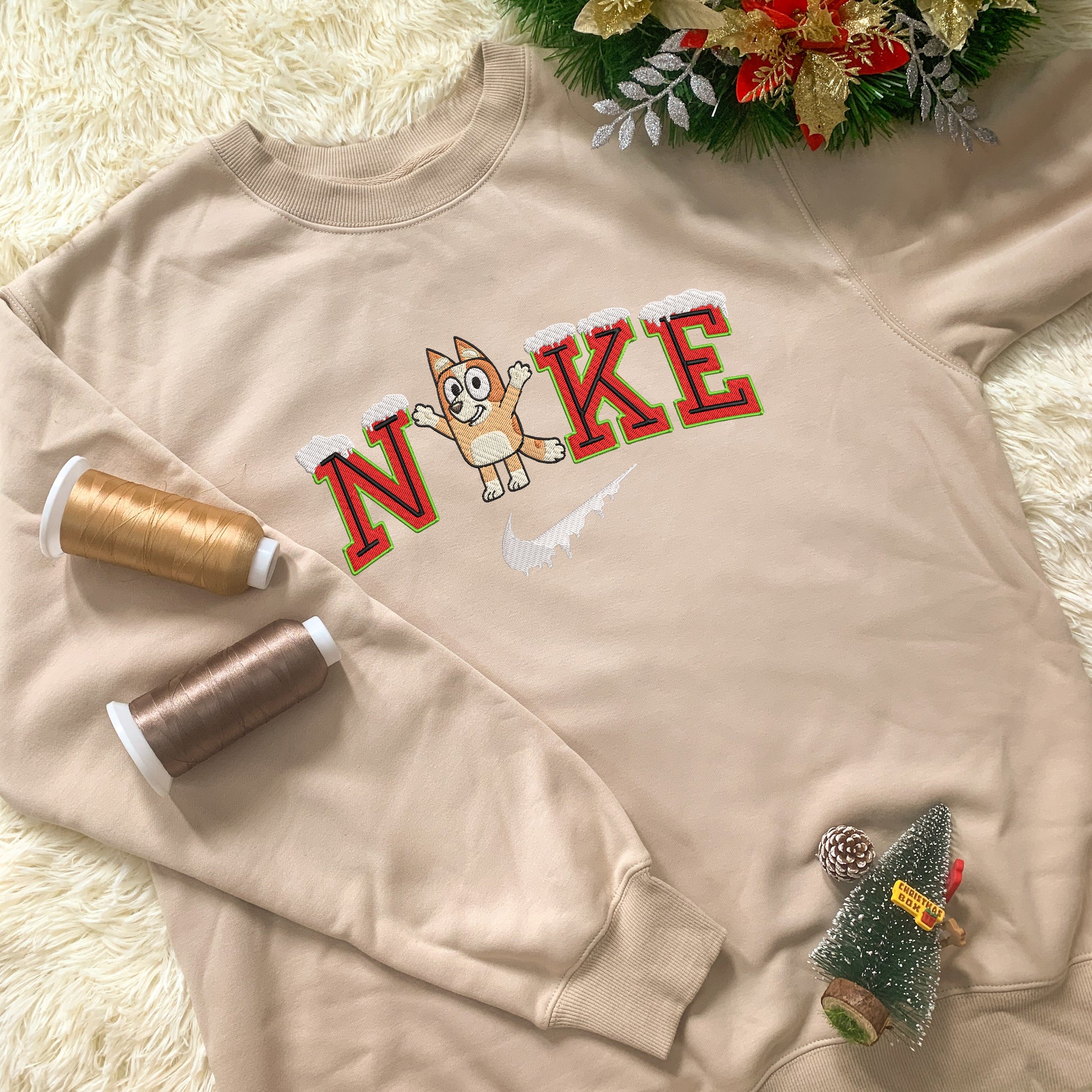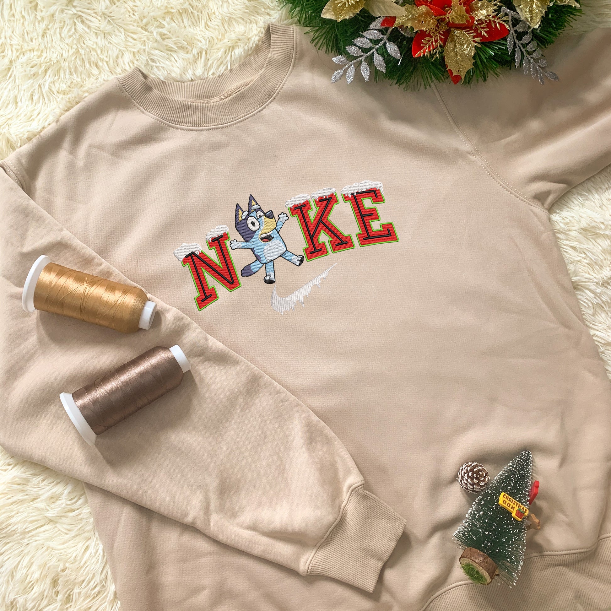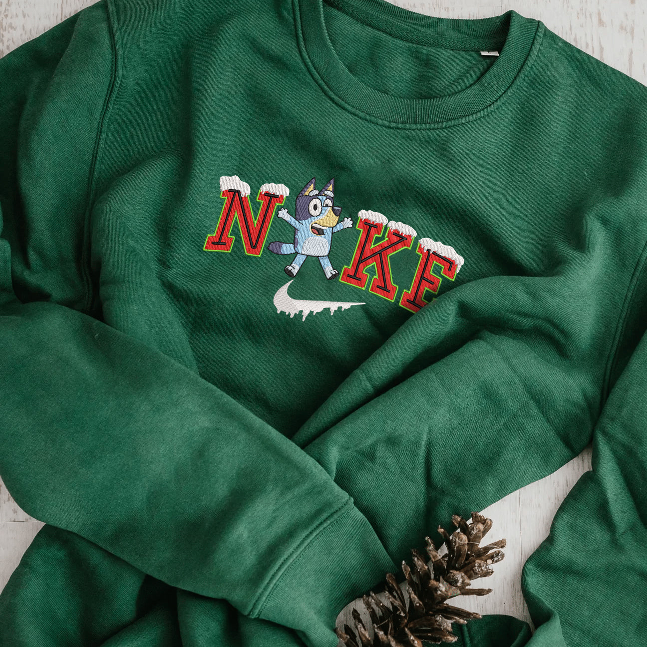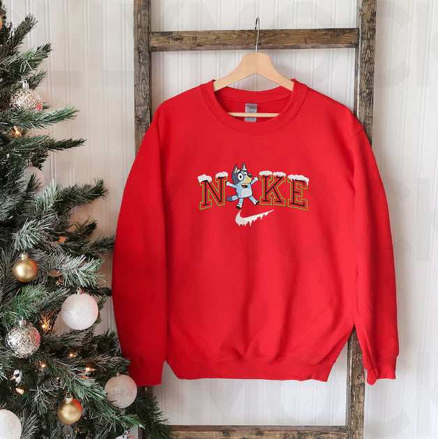 Personalized Embroidered Christmas Bluey And Bingo Hoodie Sweatshirt T-Shirt