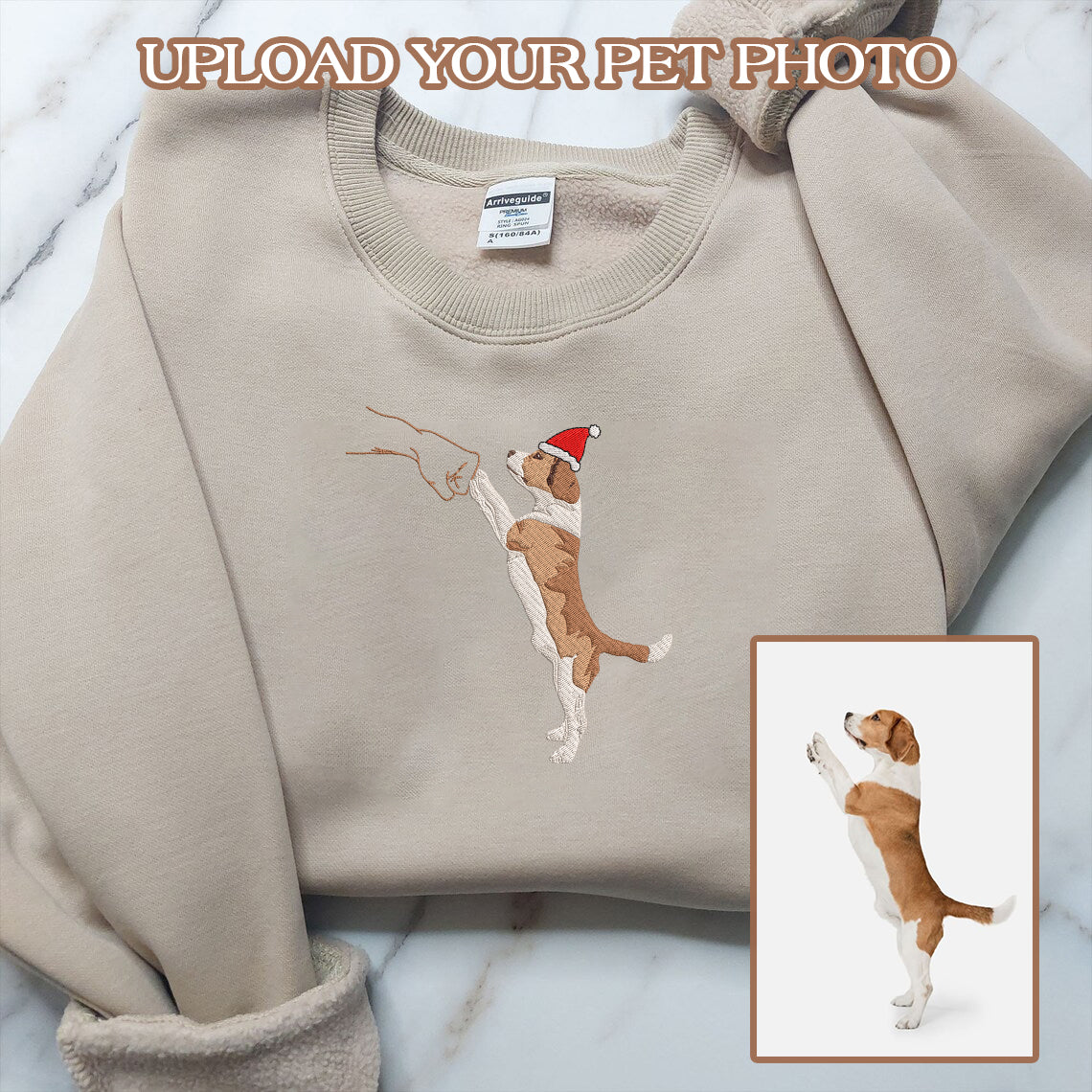 Personalized Embroidered Christmas Pet Dog Cat High-Five Hoodie Sweatshirt T-Shirt