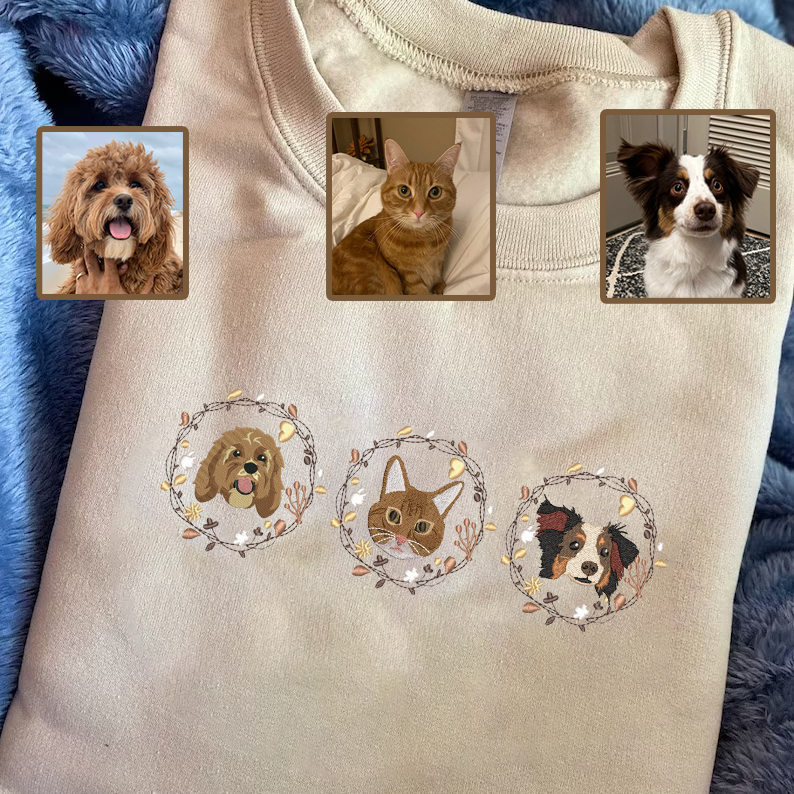 Personalized Embroidered Floral Pet Dog Cat Hoodie Sweatshirt T-Shirt