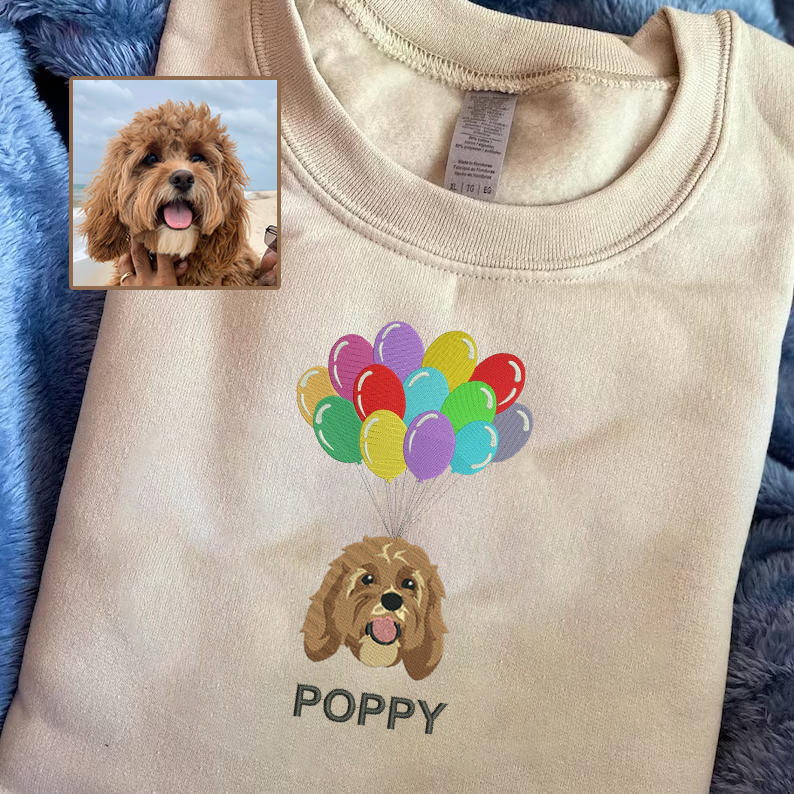 Personalized Embroidered Pet Dog Cat Balloon Hoodie Sweatshirt T-Shirt