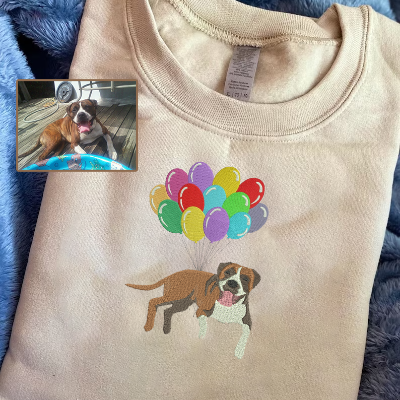 Personalized Embroidered Pet Dog Cat Full Body Balloon Hoodie Sweatshirt T-Shirt