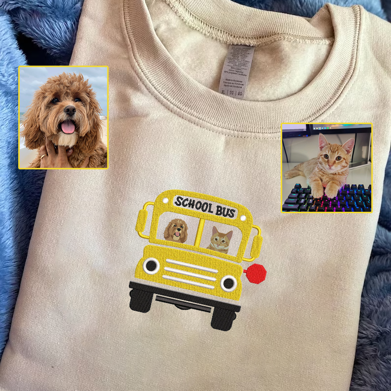 Personalized Embroidered Pet Dog Cat School Bus Hoodie Sweatshirt T-Shirt