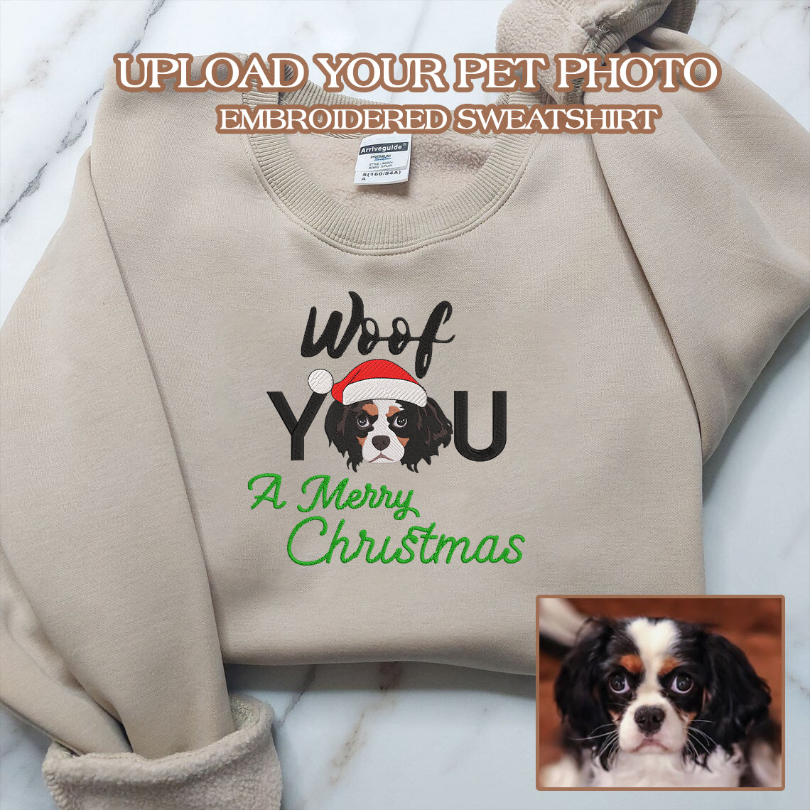 Personalized Embroidered Woof You A Merry Christmas Pet Dog Cat Hoodie Sweatshirt T-Shirt