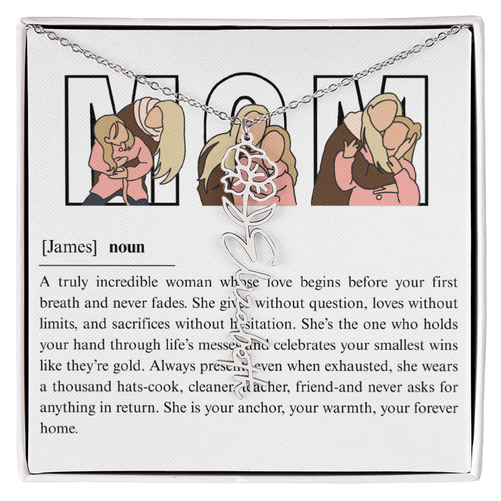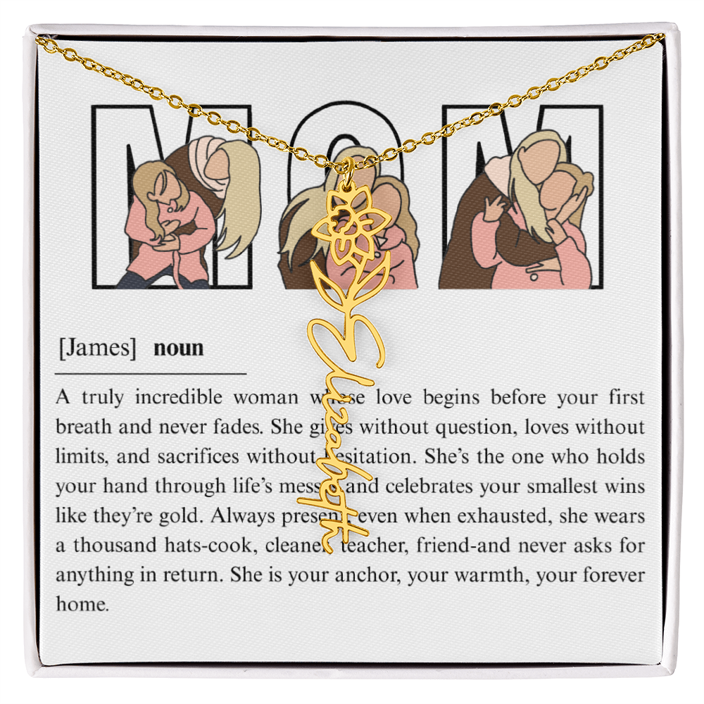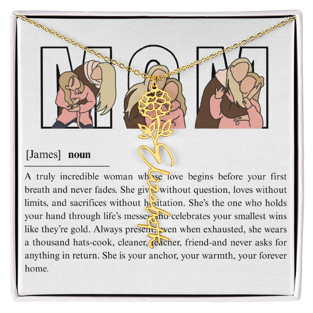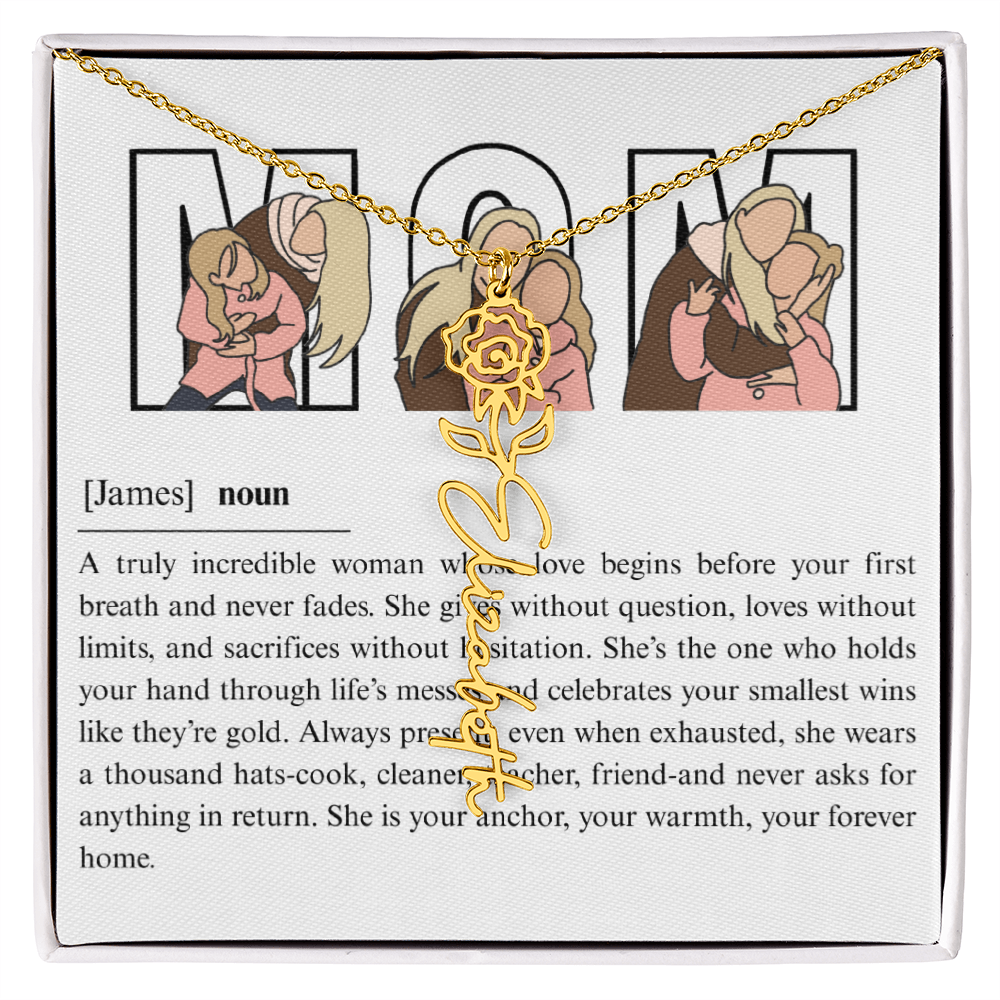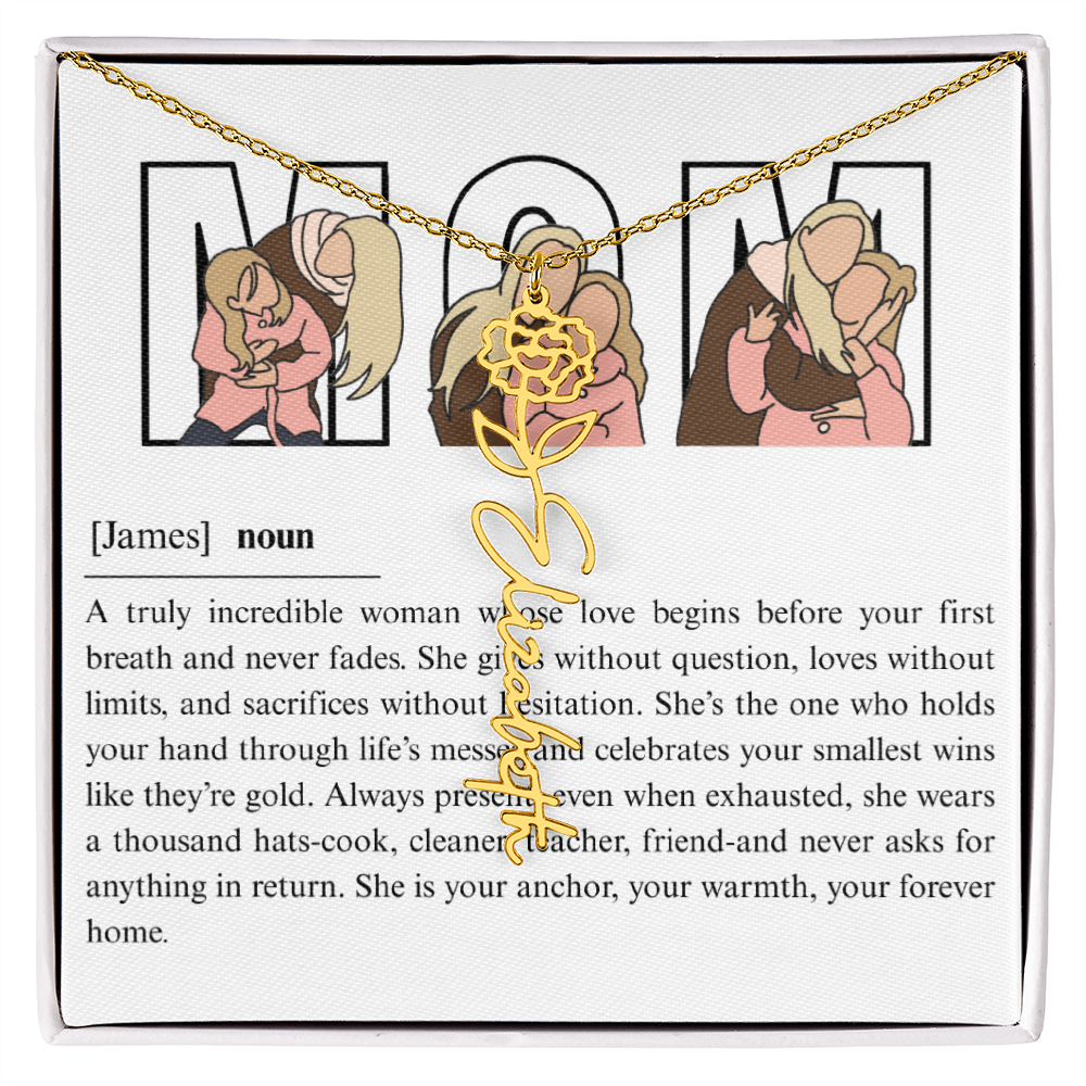 Need a gift that's as unique as she is? Then look no further than our Flower Name Necklace! With a customizable birth flower design, this necklace is a meaningful addition to any jewelry collection. Whether you're dressing up for a special occasion or simply want to add some flair to your everyday look, this necklace is perfect for your special someone. Handcrafted from high-quality materials, it is both stylish and durable. So why wait? Personalize your own floral name necklace today!