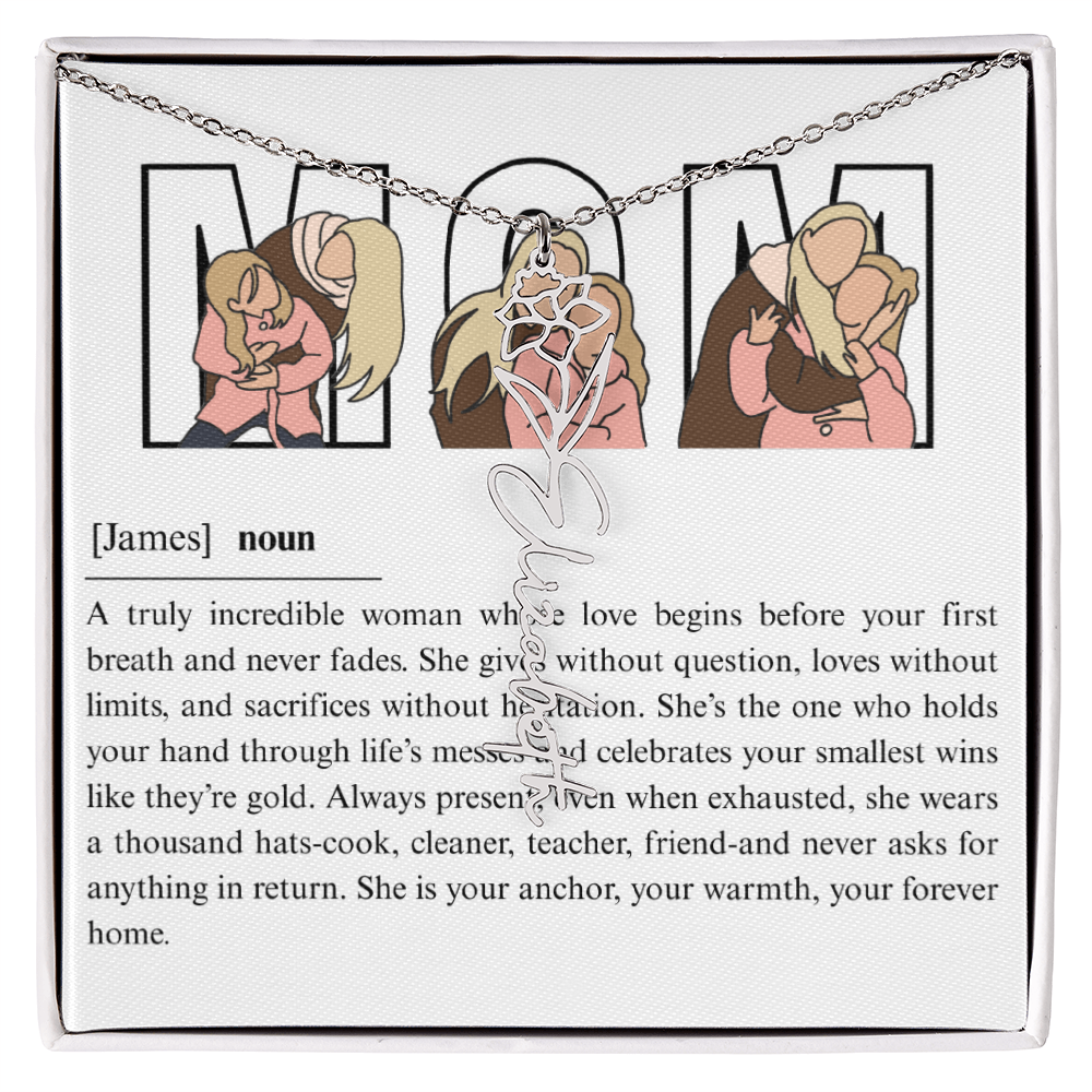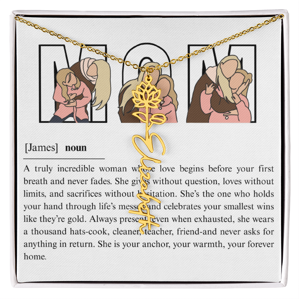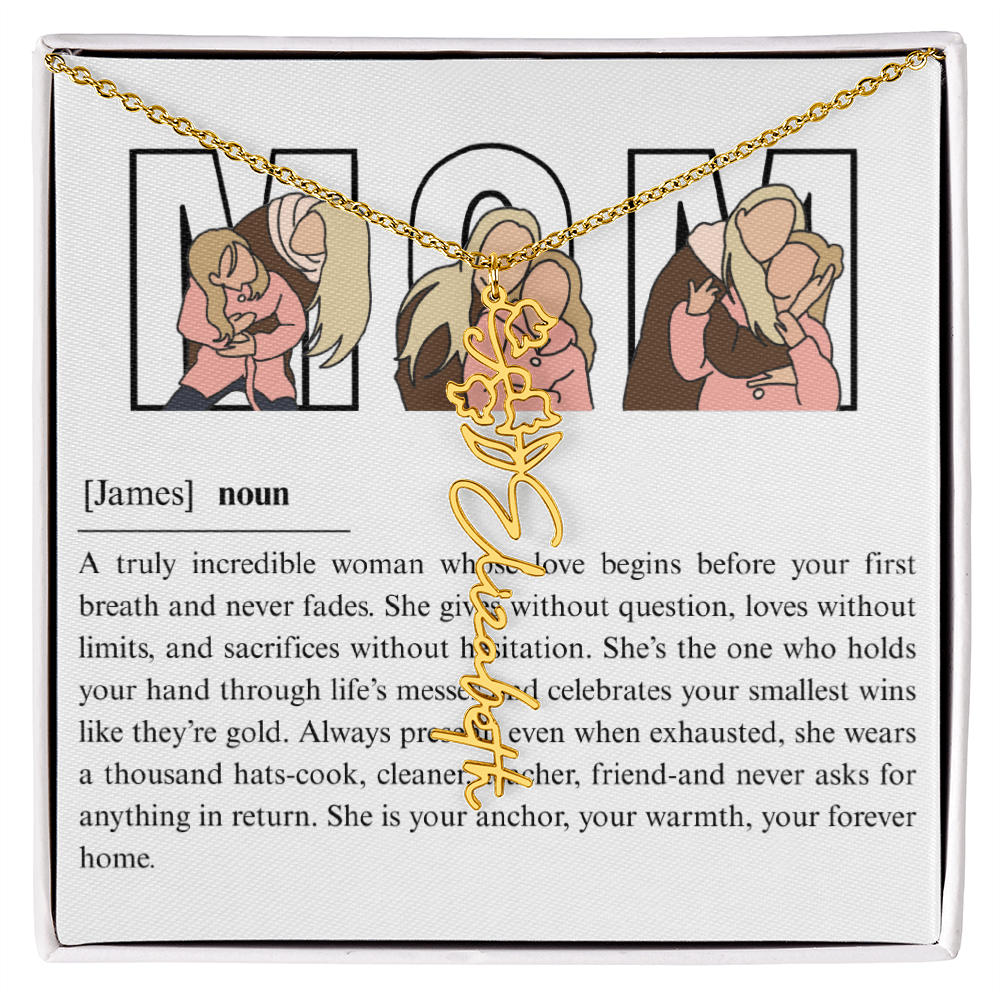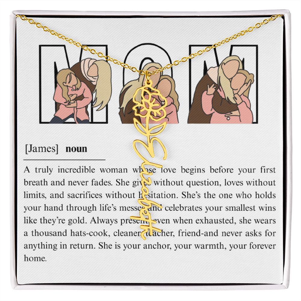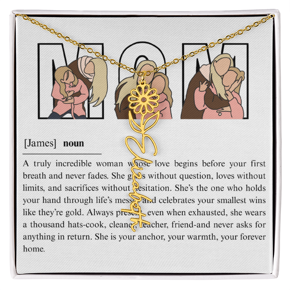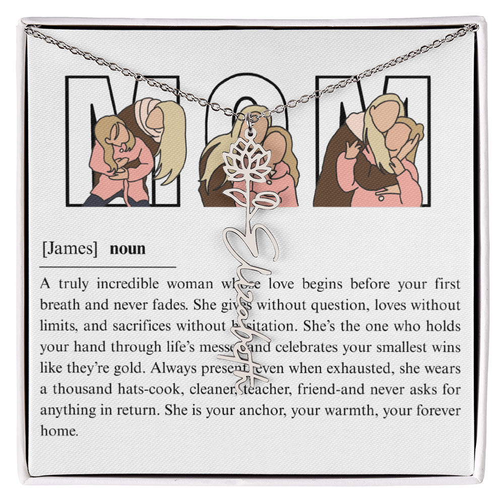 Need a gift that's as unique as she is? Then look no further than our Flower Name Necklace! With a customizable birth flower design, this necklace is a meaningful addition to any jewelry collection. Whether you're dressing up for a special occasion or simply want to add some flair to your everyday look, this necklace is perfect for your special someone. Handcrafted from high-quality materials, it is both stylish and durable. So why wait? Personalize your own floral name necklace today!