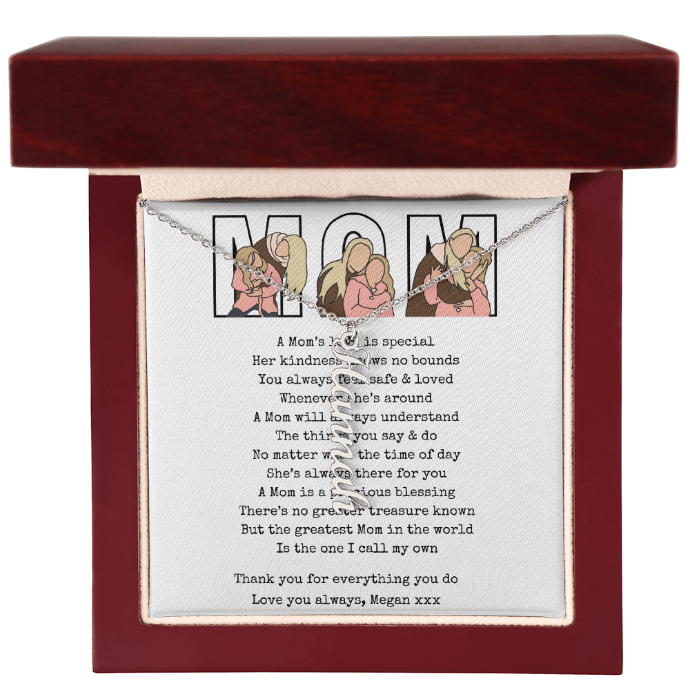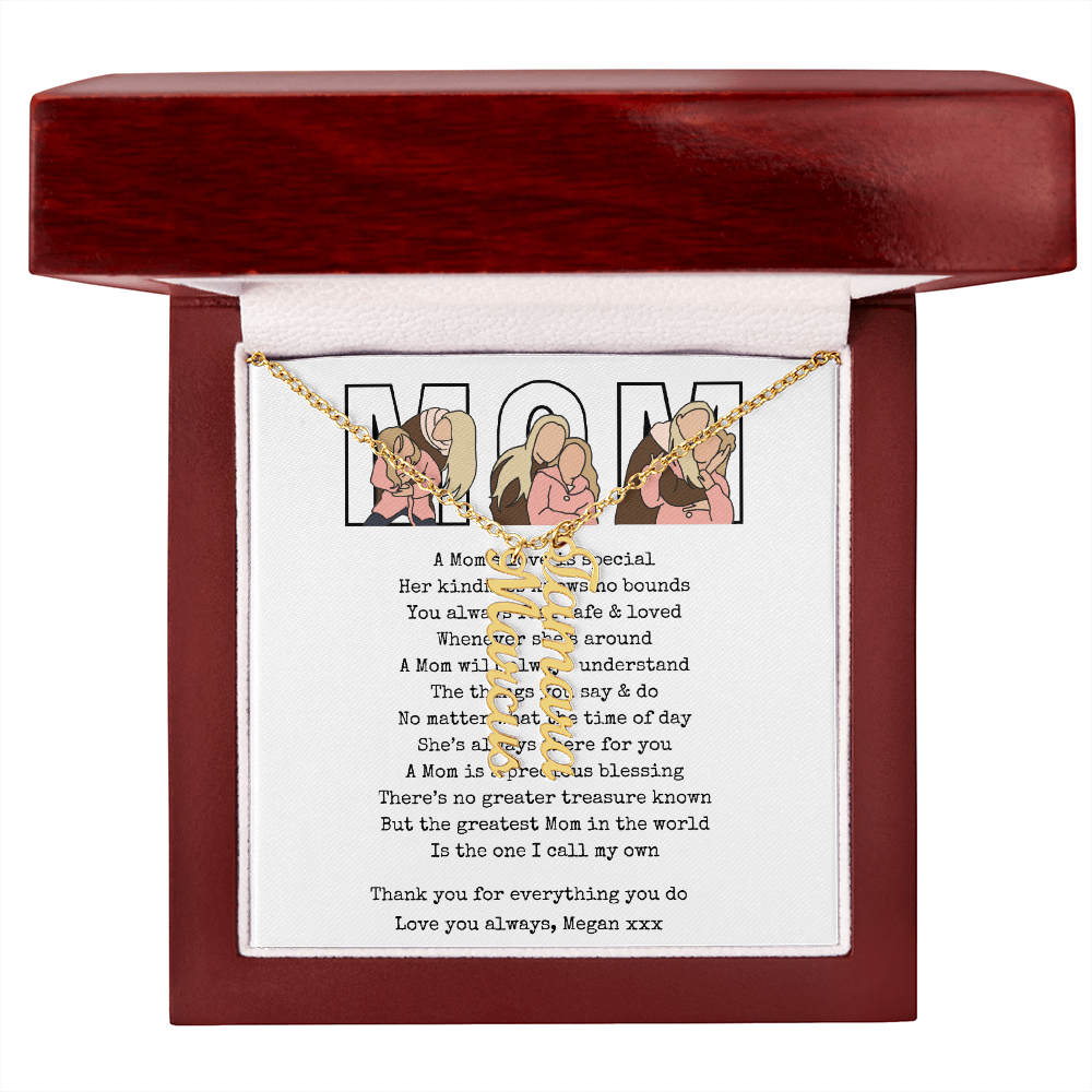 Give your special someone a custom vertical necklace made just for them! Our Personalized Vertical Name Necklace is the perfect gift for your loved ones and will become a versatile accessory for any occasion. From a heart-warming holiday present, anniversary or birthday gift, or just because, this unique necklace adds a trendy touch to any outfit.