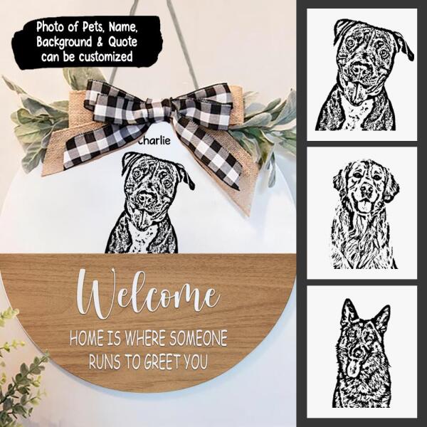 Personalized Peeking Pet Portrait Door Plate - Photos of Your Pets, Names, Background and Quote can be customized