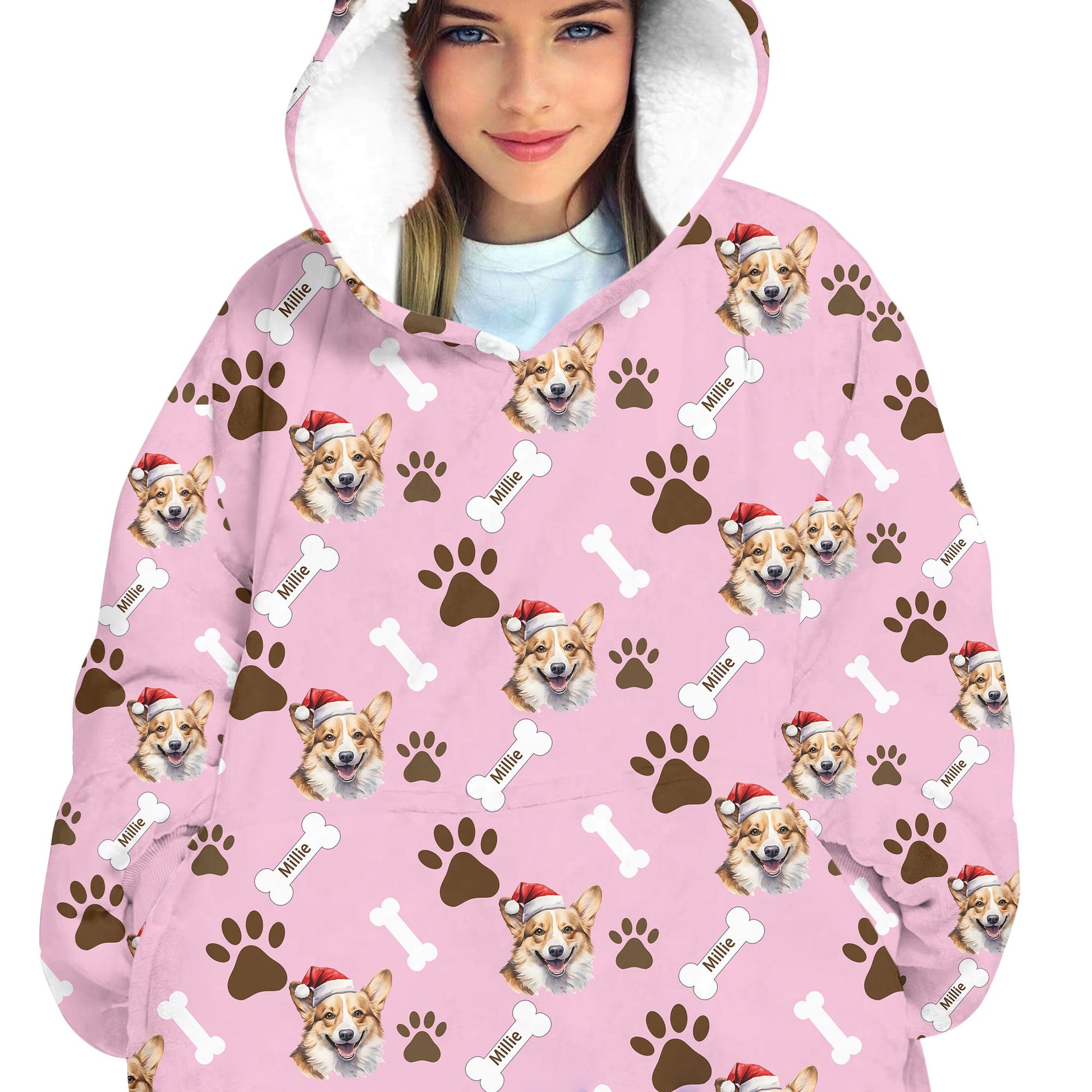 Personalized Pet Christmas Oodie Blanket Hoodie