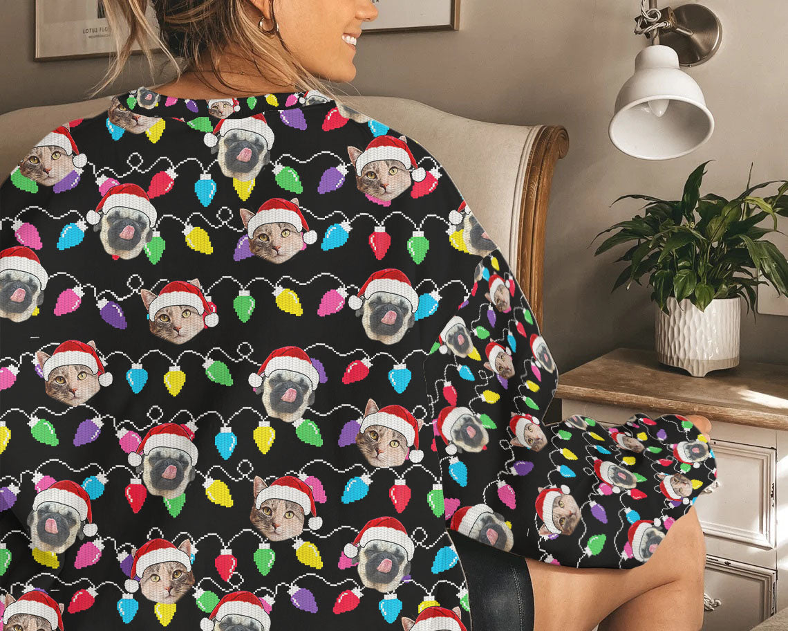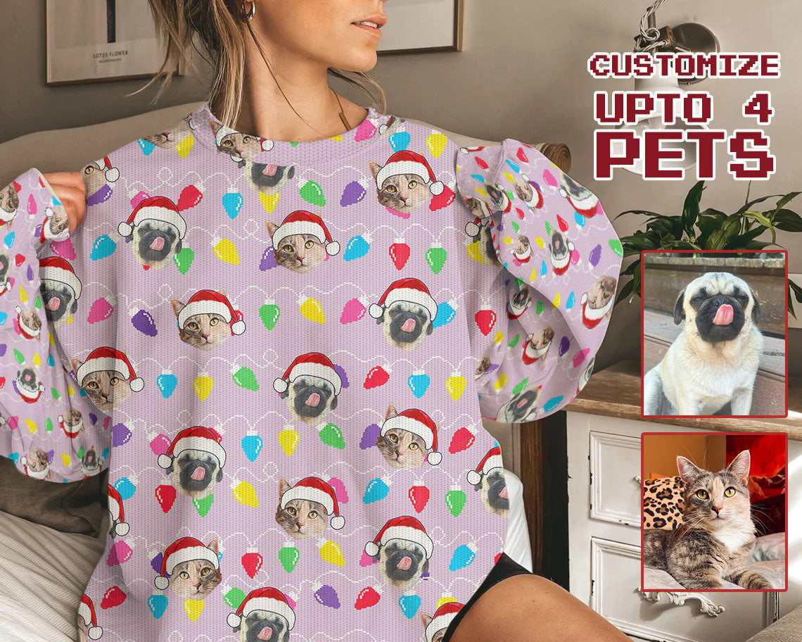 Personalized Pet Dog Cat Christmas Light Imitation Knitted Sweatshirt
